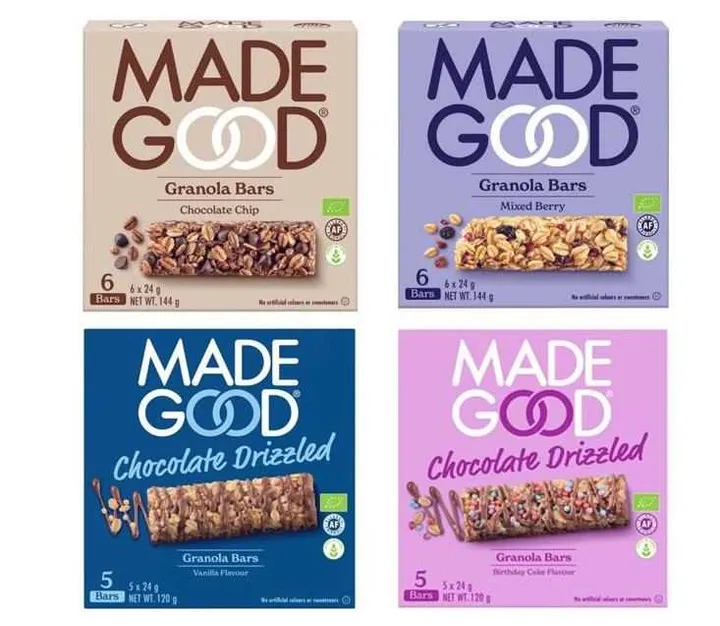 De terugroepactie betreft de volgende Made Good-granolabars: