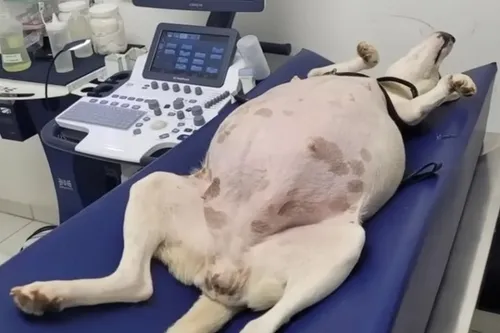 "Kijk naar haar buik - er zitten misschien 13 of 14 baby's in. We proberen haar test voor morgen in te plannen, omdat ze vrij zwak is." Zo verklaarde een vrijwilliger.