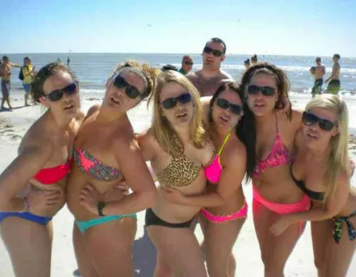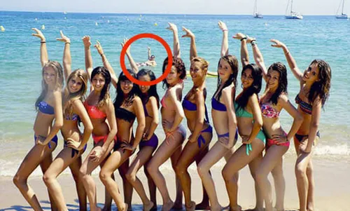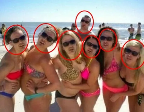 Deze foto van wat jonge vrouwen die aan het strand hangen en samen op de foto vieren lijkt normaal. Maar wat ze niet weten, is dat er een man achter hen staat.