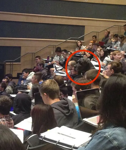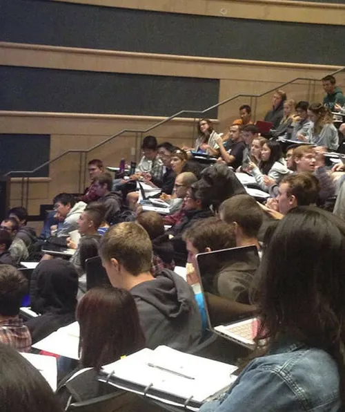 Het lijkt alsof het gewoon een perfect normale klaslokaalscène is, zoals je op elke universiteit zou zien.